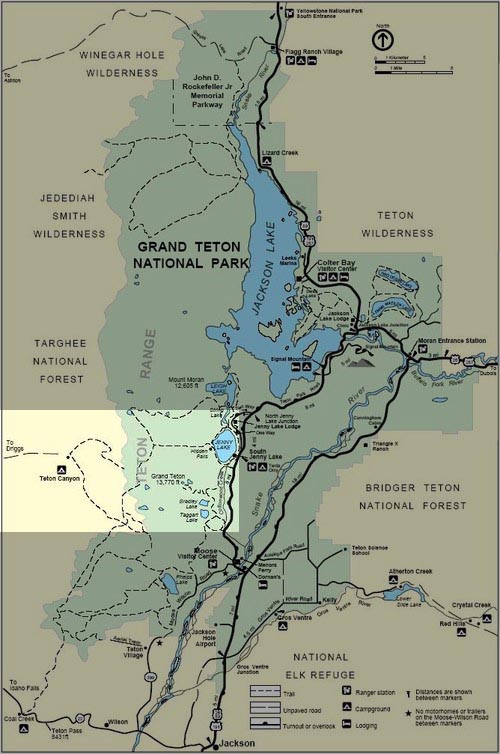 Die Grizzlies sind aber eher im Yellowstone und im Norden der Tetons anzutreffen, es war aeusserst unwahrscheinlich, das uns da einer auf unserem Weg ueber den Weg laufen wuerde.