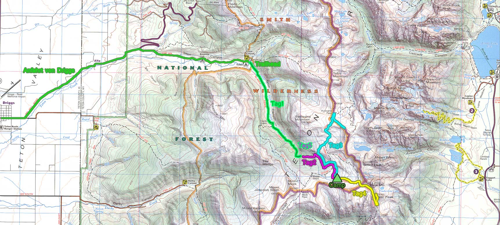 danke für die Karte. Jetzt weiß ich ohne Sucherei, wo ihr unterwegs gewesen seid. Ich war nur mal bei einer Tageswanderung auf dem Cascades Canyon Trail bis zu dem Punkt, wo sich der Trail nach Norden und Süden teilt. Gern würde ich dort mal weiter gehen und ein paar Nächte bleiben.