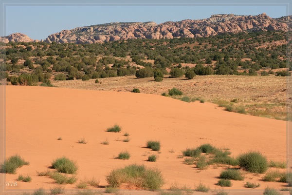 Diese führt uns südlich auf der 191 aus Moab heraus und nach etwas mehr als zwölf Meilen biegen wir nach rechts in das Backcountry ab. Die Dirtroad führt ziemlich bald an einigen Sanddünen vorbei.
