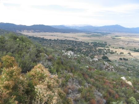 Wir beschlossen, die Straße Richtung Mecca, die geradeaus irgendwo in den Bergen verschwand, zu meiden und lieber auf dem Highway stehen zu bleiben. Mit so spritschonendem Fahren wie möglich wandten wir uns nach Westen und schafften es tatsächlich bis zu einer Tankstelle in Coachella. Dort waren dann auch gleich 3 nebeneinander. Sehr erleichtert tankten wir voll und suchten dann auf der Karte nach dem besten Weg zu den Palomar Mountains. Wir wollten dort das Observatory anschauen und im naheliegenden State Park übernachten. Da wir keine genaue Adressangabe hatten und nicht sicher waren, ob das dem Navi-Operator reichen würde, riefen wir keine Route ab sondern fuhren einfach “frei Schnauze” weiter. Diese Entscheidung war vielleicht nicht so glücklich, denn der vermeintlich kürzere Weg führte uns über eine endlos scheinende Anzahl von kleinen und kleinsten kurvenreichen Straßen und Sträßchen. Landschaftlich sehr hübsch, aber nervig zu fahren. Erst nach einigen Stunden erreichten wir die Abzweigung zum Palomar Mountains State Park. Die Straße ging serpentinenähnlich hoch in die Berge und der Blick nach unten war sehr schön.