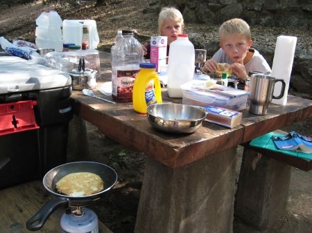 Palomar Mountains State Park - San DiegoIch wachte sehr früh auf und wie üblich war die erste Tat, Kaffeewasser zu kochen. Annika war ebenfalls ungewöhnlich früh wach, und wir nutzten die frühe Morgenstunde gleich zum Duschen. Später konnte es nur voller werden. Danach waren wir hellwach und voller Tatendrang. Der Rest der Familie wurde sogleich aus den Federn geholt und wir frühstückten ausgiebig.