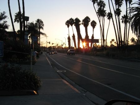 Mehr gab es dann aber nicht zu tun, und wir machten uns auf den nicht mehr so weiten Weg nach San Diego. Je tiefer wir kamen, desto heißer wurde es wieder. Wir folgten der #76 nach Westen Richtung Oceanside und kamen an riesigen Obst- und Palmenplantagen vorbei. Orangenbäume direkt am Straßenrand waren dann zu viel der Versuchung und ich pflückte eine Apfelsine.