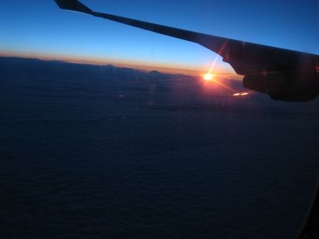 Es ging aber alles sehr zügig voran und der Flieger startete pünklich. Wir saßen in der letzten Mittelreihe, was blöd war, da sich dort die ganze Nacht über alle vor den Toiletten versammelten und ein Schwätzchen hielten. Direkt neben mir war der Notausgang und der war ein beliebter Treffpunkt. Normalerweise schlafe ich so fest, dass ich noch nicht mal eine Trompete neben hören würde, aber im Flieger geht das nicht. Also musste ab und zu ein bisschen dösen reichen.