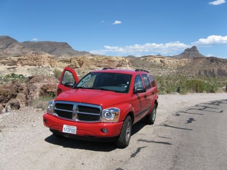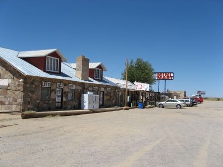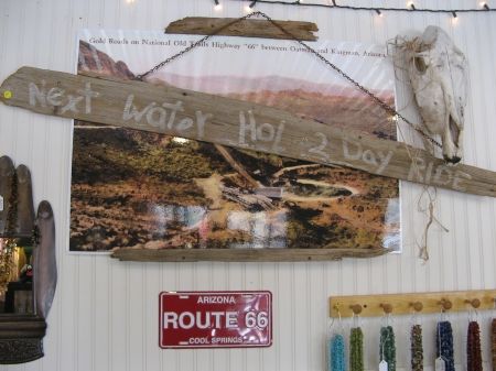 der Hitze?), aber zumindest der erste Teil der Strecke war klar, nämlich über den Hoover Dam und Kingman nach Oatman. Da wir die Strecke schon kannten, hielten wir nur kurz am Hoover Dam und später an einem kleinen Laden, der inmitten der weiten Einsamkeit auf einmal wie eine Oase neben der Highway auftauchte. Hier kauften wir Eis für die Kühlbox, und auch noch gleich welches für die Kids.