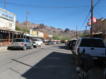 Wir bummelten durch die Geschäfte, streichelten die Esel, gingen deren Hinterlassenschaften weiträumig aus dem Weg und landeten schließlich im Oatman Hotel. Hier gab es Pommes für die Kinder und Chief Salad für uns, dazu eiskaltes Bud bzw. Coke. Der Salat war übrigens super. Die Kinder suchten noch "unseren Dollar" vom Vorjahr, aber fanden ihn nicht wieder.