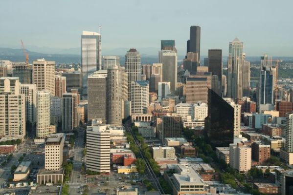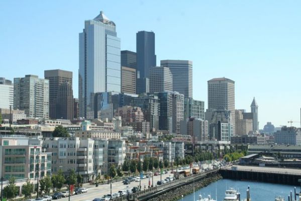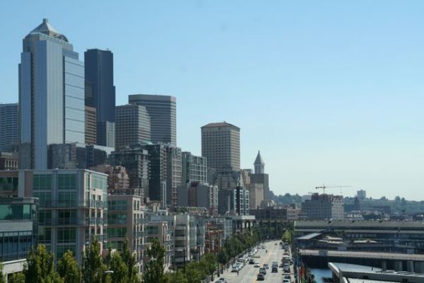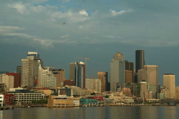 Wegen des Baum-Zwischenfalls kam wir natürlich verspätet in Seattle an, so kurz vor Acht. Aber die jetzt herrschenden Lichtverhältnisse entschädigten dafür.