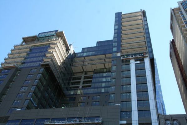 An den Häuserwänden sahen wir diese Fensterputzer in den Gondeln oder wie das heißt, die man ja aus fast jedem amerikanischen Film kennt. Hier hab ich so was noch nie gesehen.