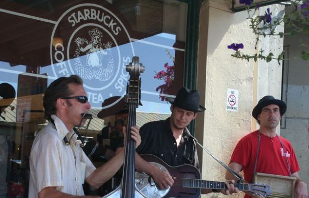 Ansonsten ist auch drinnen immer viel los. Ich habe mir dort trotzdem einen ganz normalen Kaffee gekauft, ja das gibt's dort auch, nicht nur soy latte fat-free mocchaccino mit sweetener oder sowas, was beim Aussprechen länger dauert als beim Trinken. Außerdem gab es da allen möglichen Krimskrams vom T-Shirt bis zu Kaffebechern mit Starbucks-Logo (dem neuen, nicht dem alten). Sowas habe ich aber nicht gekauft, ich zahl schließlich nicht auch noch dafür, Firmenwerbung rumzutragen.