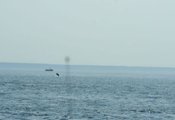 Es war nicht, die Wale zu fotografieren. Denn sobald man einen erspäht hatte und sich anschickte, ihn zu fotografieren, war er oft schon weg. Aber ein paar Bilder haben wir schon geschafft, sogar eines, wo der Orca aus dem Wasser springt.