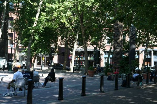 Aus irgendwelchen Gründen hatten wir damals bei der Reisevorbereitung unseren Mietwagen nur bis heute gebucht. Am frühen Vormittag gaben wir das Auto ab, die Abgabestelle war irgendwo in Downtown, nicht allzu weit entfernt vom Pioneer Square. Größere Ausflüge mit dem Auto in und um Seattle fielen nun flach. Ich weinte unserem guten alten Pontiac kurz hinterher, aber auf der anderen Seite hatte das auch sein Gutes, nun konnten wir alles, was fußläufig war etwas genauer ansehen. Lieber sich auf eine Ecke konzentrieren und dafür richtig, als überall durchzurasen. Man muss nur immer das Positive sehen und aus allem das beste machen, dann hat man auch einen tollen Urlaub und überhaupt ein schöneres Leben.