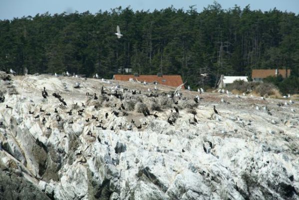 Auf dem Rückweg nach Friday Harbour kamen wir noch an einer klitzekleinen Insel vorbei, die über und über mit brütenden Seevögeln bedeckt war.