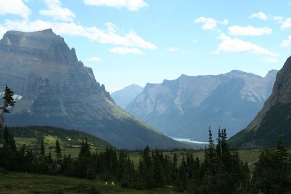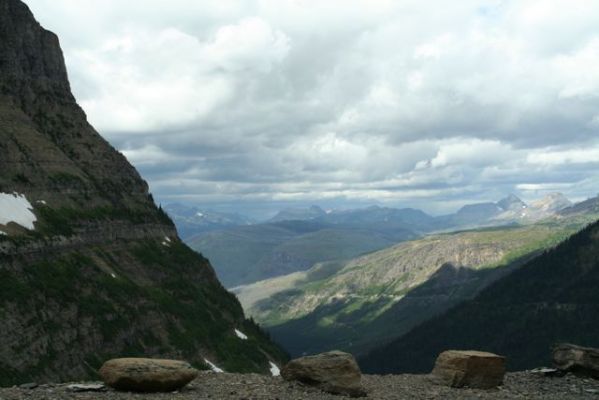 Auch der weitere Verlauf der Straße war einfach nur beeindruckend. Viele sagen ja, wenn man die Alpen kenne, dann sei Glacier zwar nett, aber nichts besonderes. Diese Meinung kann ich überhaupt nicht teilen. Ich kenne die Alpen und die sind nichts im Vergleich zu hier. Ich habe nur selten Landschaften gesehen, die mich so in den Bann schlagen und so beeindrucken. Auf den Bildern kommt das leider nur annähernd raus, die können das Panorama dieser hohen Berge und tiefen Täler nicht richtig rüberbringen. Es gibt keine andere Beschreibung als "wunderschön". Für mich ist der Glacier neben dem Grand Canyon der schönste Park, den ich kenne (ok, ich kenne auch nur neun). Er gefiel mir sogar besser als der Yellowstone. Klar, der Yellowstone hat viel mehr unterschiedliche Attraktionen zu bieten, ist abwechslungsreicher, aber schöner finde ich Glacier. So, genug gelobhudelt. Weiter geht's.