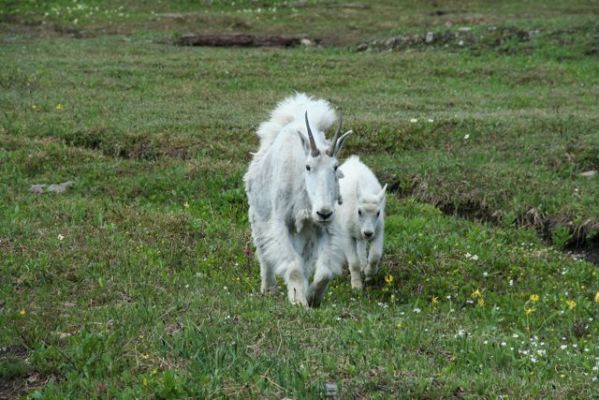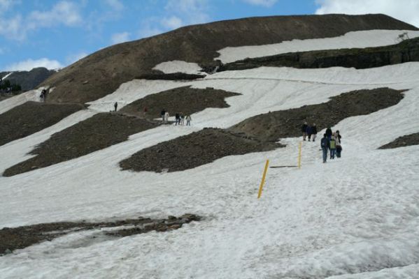 Große Teile des Weges waren noch mit Schnee bedeckt. Es war ziemlich windig und frisch, die gestern gekaufte Fleecejacke war Gold wert. Schon bald kamen uns einige snow goats entgegen, die anscheinend schon sehr an Touristen gewöhnt waren. Außerdem gab es hier lauter Murmeltiere.