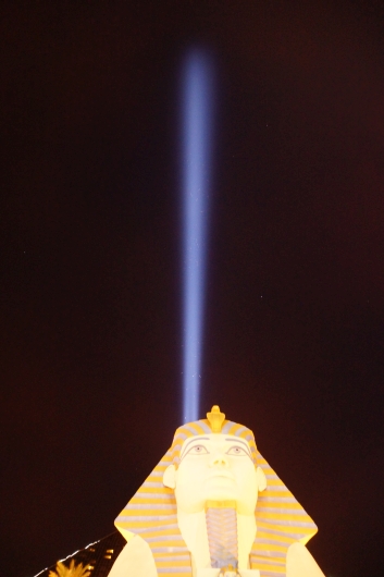 Nach einem kurzen Abstecher ins Excalibur, das wie ein Schloss von Walt Disney ausschaut, sind wir noch ins Luxor gegangen. Um zu demonstrieren, wie laut die Zimmer sind, sind wir mit dem Aufzug ein paar Stockwerke nach oben gefahren. Nein, nicht nach oben, sondern schräg nach oben. Da die Pyramide keine senkrechten Wände hat, fahren die Aufzüge schräg.