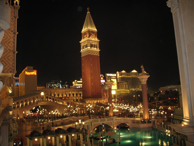 Dann ging’s auf die letzte Strip-Tour. Dieses Mal liefen wir in die andere Richtung, also Richtung Stratosphere Tower. Beim „Casino Royal“ gingen wir in einem Outback Steakhouse Abendessen. Von dort aus ging’s weiter ins Venetian, das wir uns 2004 zwar schon ausführlicher angeschaut hatten, aber es lag ja praktisch auf dem Weg