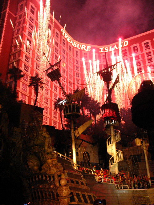 Nächster Stopp war das Treasure Island, wo wir uns die „neue“ Show „Sirens of the TI“ anschauen wollten. Ganz neu ist die how ja nicht, aber 2004 hatten wir sie nicht gesehen, weil sie 2x wegen Wind abgesagt wurde. Wir kamen auch gerade richtig, nach ca. einer ½ Stunde Wartezeit ging die Show auch los.