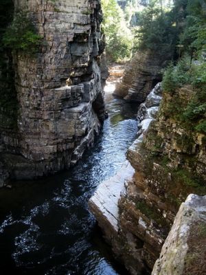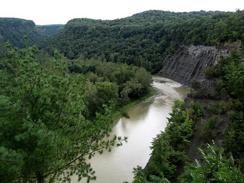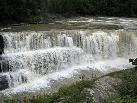 Wir spazieren zur amerikanischen Seite. Hier die starke Stömung, die zu den Fällen führt: