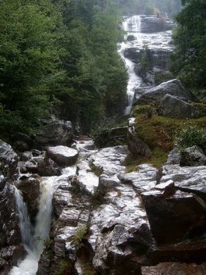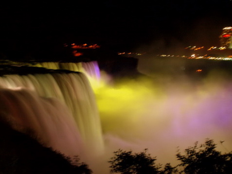 Wir machen die Journey of the Falls Tour. Mit einem Fahrstuhl geht es runter und dann durch einen Tunnel unter die Fälle. Wir bekommen zurechtgeschnittene plastiktüten, die wir als Jacke anziehen, um uns vor der Nässe zu schützen. Das hilft nicht wirklich. Nach der Tour sind wir pitschenass. Die Gischt des Wassers verhinderte, dass ich kontrolliert Bilder knipsen konnte, hier dennoch ein faszinierender Eindruck: