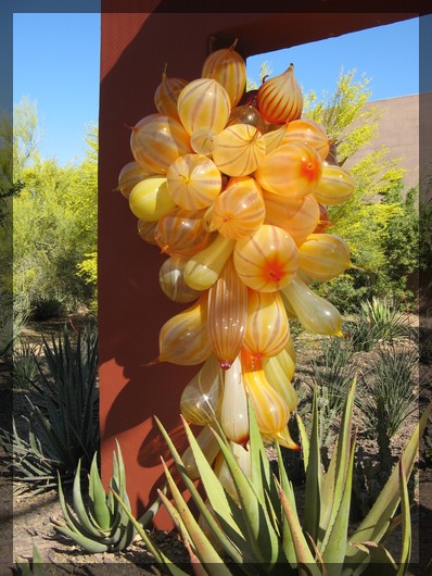 Wir fahren nun zum Desert Botanical Garden, der direkt an der Stadtgrenze zwischen Scottsdale und Phoenix gelegen ist. Hier findet zur Zeit eine Ausstellung eines Glasbläser-Künstlers statt und anscheinend sind wir nahezu die einzigen Besucher, die nicht wegen der Skulpturen gekommen sind. Wir sind dafür umso begeisterter von den Pflanzen: während wir die letzten drei Wochen nördlicher unterwegs waren, hat hier die Kakteenblüte eingesetzt und überall blüht es in allen Farben des Regenbogens. Sehr interessant sind auch die "Gärten", in denen gezeigt wird, wie die indianischen Ureinwohner die Wüstenpflanzen genutzt haben und was für Pflanzen die spanischen Conquistadores aus ihrer Heimat mitbrachten.