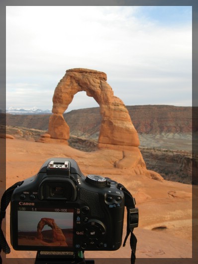 Ist das ein Arch? Nein, es ist das Bild eines Arches!In der am 23.5 geposteten Tagesetappe haben wir den Fotografenauflauf am Mesa Arch beschrieben, sowie die teilweise echt faszinierenden Kameras, die dabei verwendet wurden. Beides sieht man auf folgendem Foto sehr schön - man beachte vor allem die zweite Kamera von links.