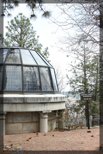 Flagstaff selber kennen wir auch schon. Auch wenn es uns sehr gut gefallen hat, beschränken wir uns daher auf einen Besuch des auf einem Hügel oberhalb der Stadt gelegenen Lowell Observatory. Von hier bietet sich schon bei der Anfahrt ein toller Blick auf Flagstaff. Das Observatorium selber liegt in einem schönen Parkgelände. Wir schauen uns die kleine aber nette Ausstellung an und machen dann eine Führung mit. Diese führt als Höhepunkte zum Mausoleum von Percival Lowell und zu einem unter einer Holzkuppel befindlichen mehr als hundert Jahre altem 24 Zoll-Refraktorteleskop. Ein wirklich beeindruckendes Gerät. In einem zusätzlichen Gebäude sehen wir eine kleine Ausstellung zur Entdeckung durch William Tambaugh und der darauffolgenden sehr schwierigen Namensgebung von Pluto. Sehr geschickt angelegt ist die hier am Ausgang angebrachte Spendenbox: Diese ist in drei Teile angelegt und die Besucher können mit ihrer Spende abstimmen, ob der kürzlich zum Zwergplaneten degradierte Pluto ihrer Meinung nach weiterhin als ausgewachsener Planet betrachtet werden sollte oder nicht.