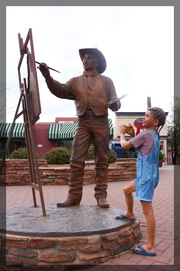Weiter geht es Richtung Süden auf der AZ 89A, die Richtung Sedona zunächst sehr malerisch durch den dicht mit Nadelbäumen bewachsenen Oak Creek Canyon führt. Vor dem Beginn dieses Canyons halten wir am Oak Creek Canyon Overlook an und genießen einige Zeit den beeindruckenden Ausblick. Im weiteren Verlauf führt sie Straße durch einge Haarnadelkurven zunächst steil nach unten und mit kleiner werdender Entfernung zu Sedona vorbei an immer mehr schönen Formationen aus roten Felsen. Sedona selber gefällt uns nicht sehr gut: Es handelt sich zwar um eine hippe und moderne (es gibt sogar Kreisverkehre!) Stadt, uns erscheint sie aber trotzdem als eine einzige riesige und von Menschen überlaufene Touristenfalle. Was uns gefällt sind die zahlreichen netten Skulpturen, die hier ausgestellt sind.