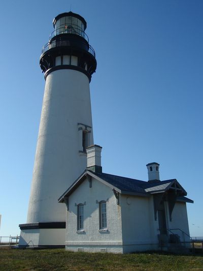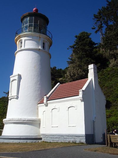 Ein paar Meilen südlich, an der Mündung des Yaquina River, liegt das Städtchen Newport, hier schlendern wir die Historic Bayfront entlang und entscheiden uns für Seafood als Abendessen. Lecker, auch wenn die Mengen an Shrimps, die wir bekommen, uns für den Rest des Urlaubs reichen... An der Küste steht hier noch ein weiterer Leuchtturm, das Yaquina Bay Lighthouse. Das war aber nur ein paar Jahre in Betrieb und wurde dann vom Yaquina Head Lighthouse abgelöst.