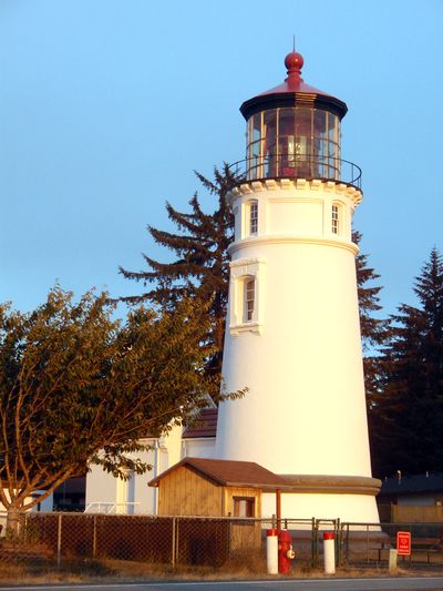 Das Dünengebiet wird durch die Mündung des Umqua River unterbrochen. Hier steht dann auch wieder ein Leuchtturm, das Umqua River Lighthouse, das wir rechtzeitig zum Sonnenuntergang erreichen: