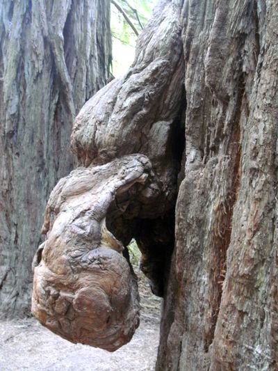 Der Weg durch den Stout Grove ist schon toll, überall diese riesigen, mehrere hundert Jahre alten Bäume. Häufig sieht man Brandspuren, einige sind innen völlig ausgebrannt, aber sie leben trotzdem noch, haben eine grüne Krone. Auffallend sind die merkwürdigen Knubbel, die vielen Bäumen aus dem Stamm wachsen. Am Boden liegen umgestürzte Bäume, auf denen schon neue Bäume Wurzeln geschlagen haben.