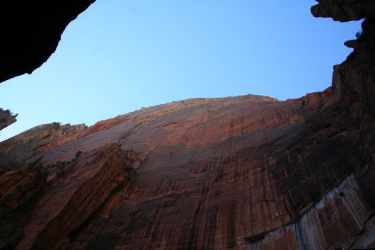 Wir besteigen den nächsten Bus und gehen auf dem asphaltierten Weg in Richtung Narrows, in der Hoffnung, der Wasserstand des Virgin Rivers erlaubt das Vordringen in die Narrows trockenen Fußes. Falsch gedacht, aber wir waren schon mal weiter drin.