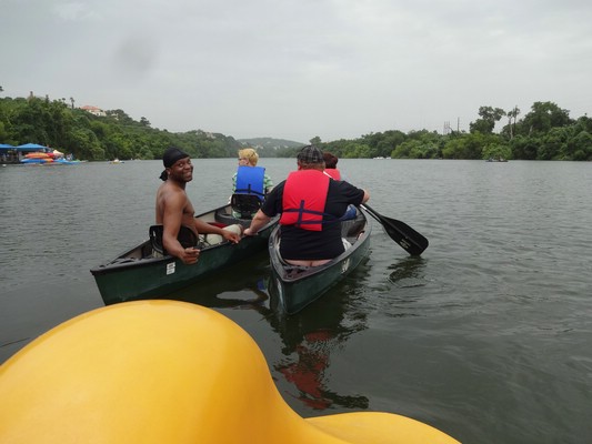 Nach einem gemütlichen und ausgiebigen Frühstück fuhren wir nach Austin. Wir holten Jonathan und James ab und fuhren dann zum Lake zum Kanu- und Paddleboatfahren. Das war sehr lustig, wir hatten viel Spaß. Es war bedeckt und es ging ein leichter Wind, sehr angenehm. Als wir allerdings ausstiegen und bezahlen wollten, vermisste Tamara ihre Geldbörse. Sie muss sie verloren haben. Sie hatte etliches Bargeld, Kreditkarten, Führerscheine von ihr und ihrer Tochter etc. darin. Sehr ärgerlich, aber wir konnten nichts machen. Wir vermuten, dass es beim Einsteigen passiert ist, aber im Wasser können wir ja schlecht suchen.