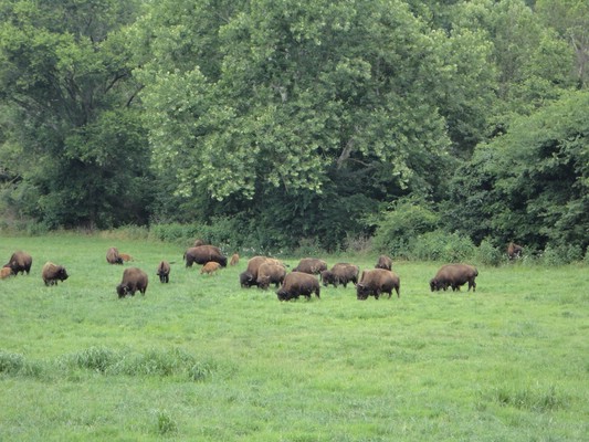 Wir besichtigten das Visitor Center und durchfuhren das Battlefield. Dann gings zur Land between the Lakes Nat. Recreation Area. Dort zahlten wir für die Elk & Bison Prairie 5,- $ pro Fahrzeug. Es sollten 50 Elks und 80 Bisons zu sehen sein. Wir sahen genau einen Bison in der Ferne liegen. Es reichte nicht einmal für ein Foto. Wir fuhren zwei Runden und gaben dann auf. Tja, es sollte wohl nicht sein. Vorher liefen sie direkt an der Straße entlang. Wir hätten uns die Durchfahrt also wirklich sparen können.