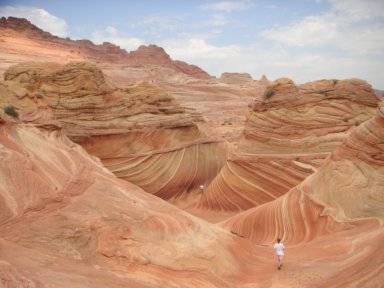 Er war etwas schneller als wir und deswegen sahen wir ihn bald ungefähr 50 Meter vor uns her laufen. Als nächstes mussten wir einen anderen Berg besteigen. Das war schon schwieriger! Aber wir habens ja auch geschafft. Dann waren wir auch schon in der wave. Total schön! Super! Einfach wunderschön da! Muss man mindestens einmal hin