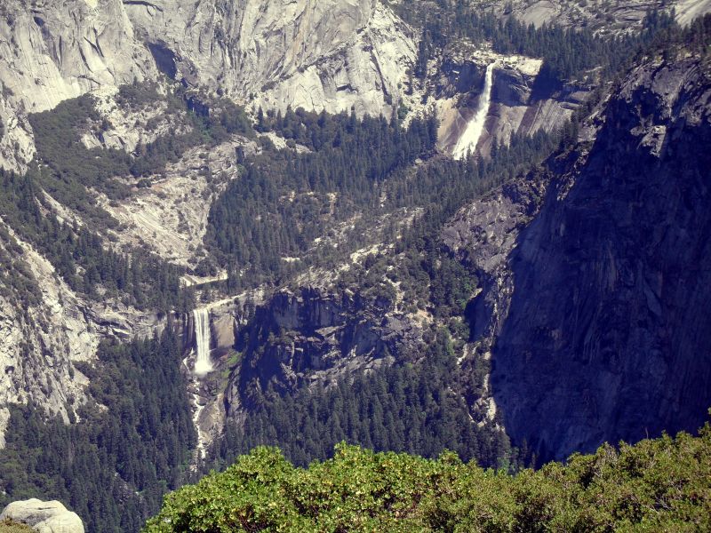 Mal wieder bekam ich feuchte Augen, diese Aussicht war einfach unglaublich: Im vorderen Bereich den Yosemite, dann zwei Wasserfälle und hinten die hohen Berge der Sierra Nevada - hier hätte ich Stunden verbringen können und einfach nur schauen.