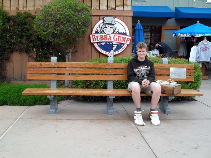 Auf dem Platz stand eine Forrest Gump Bank, und mein Sohn musste als Modell herhalten.