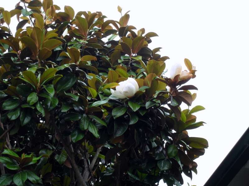 Im Innenhof wächst ein größerer Gummibaum, der zu diesem Zeitpunkt teilweise blühte.