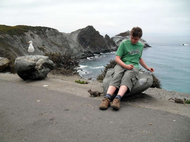 Wir setzten uns auf einen dicken Stein und die Squirrel kletterten an unseren Hosenbein hoch, stopften sich ihre Backen voll, verschwanden und versteckten wohl ihre Beute und kamen zurück.