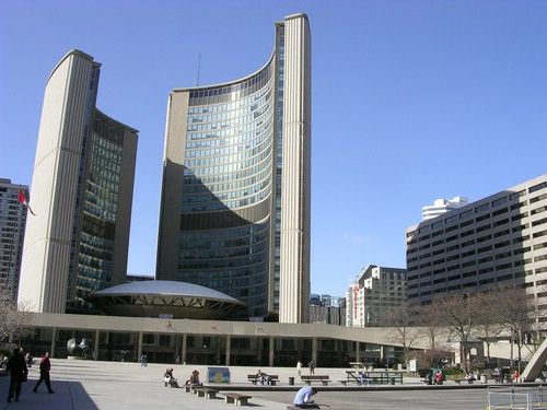 Es war mittlerweile schon 5 Uhr Abends und wir hatten doch noch eine Strecke bis nach Toronto zu bewältigen. Ich erinnerte mich an ein Strassenschild auf dem Niagara River Parkway mit der Aufschrift QEW. Das war genau unsere Richtung. Es dauerte doch eine ganze Weile bis wir endlich auf dem QEW in Richtung Toronto waren. Hier merkten wir erst, wie weit wir in Wirklichtkeit in Richtung Buffalo gefahren waren. Sofort merkte man den Unterschied was die Fahrweise in Kanada und den USA angeht. Es wurde viel schnell auf dem QEW gefahren. Jetzt konnte ich zum ersten mal alles aus unserem Buick La Sabre rausholen. Es durfte bis zu 120 km/h gefahren werden. Wir näherten uns Toronto und der Verkehr nahm um einiges zu. Da unsere Fahrtbeschreibung in Meilen war, stelle ich andauernd wenn nötig, von Kilometer auf Meilen um, um den Überblick zu behalten. Ich wollte mich auf keinen Fall in Toronto verfahren. Endlich baute sich die Stadt und die Skyline von Toronto vor einem auf. Der Anblick der Skyline und insbesondere des CN-Towers war beeindruckend. Das erste was ich bemerkte in Toronto war die Strassenbahn. Plötzlich stimmte unsere Fahrtbeschreibung nicht mehr, jedoch konnte wir aus der Ferne schon die Aufschrift des vorgebuchten Days Inn sehen. Nach weiteren Minuten standen wir vor dem Hotel. Wir wussten dass das Hotel ein Parkhaus hatte. Weit und breit war von diesem Parkhaus nichts zu sehen. Es blieb uns nichts anderes übrig als um den Block zu fahren, und siehe da, dass Parkhaus war auch gefunden. Verwundert hat mich, dass die Einfahr in das Parkhaus auf der linken Seite war. Gefahren wurde auch auf der linken Seite, wie in England. Außerdem war auf dem Boden des Parkhauses viel Sand gelegen. Wahrscheinlich als Prevention vor auslaufendem Öl. Anders kann ich es mir nicht erklären, oder hat jemand noch eine Idee wieso das gemacht wurde? Das ganze Parkhaus war voll mit Sand. Unsere Koffer wollten wir nicht in diesen Sand stellen und konnte somit die Rollräder nicht verwenden. Das Tragen der Koffer war doch anstrengend. Das Einchecken verlief problemlos. Unser Zimmer war im 18. Stock. Wir hatten ein nettes Zimmer bekommen, aber es war verdammt heiss. Dies sollte uns die nächsten 3 Nächte Schwierigkeiten bereiten. Im Nachhinein muss ich sagen, dass es dumm von uns war, uns nicht zu beschweren.