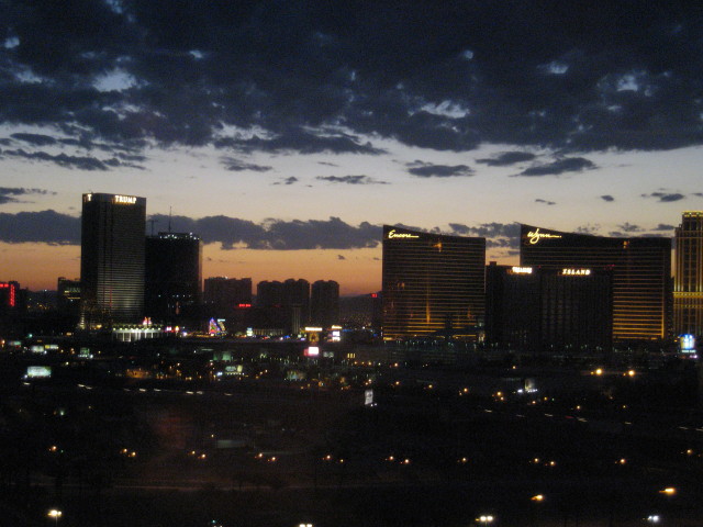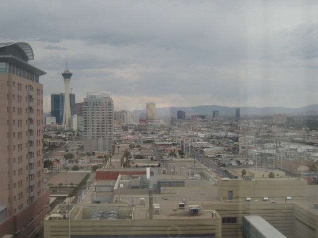 Wir haben die Vorhänge absichtlich nicht zugezogen und so werde ich gegen 7 Uhr von der hereinfallenden Sonne zum ersten Mal wach. Als ich mich aufsetze, strahlen mir Wynn/Encore und der Trump-Tower entgegen... Wow, was für ein Blick. Aber ich bin noch nicht bereit zum aufstehen