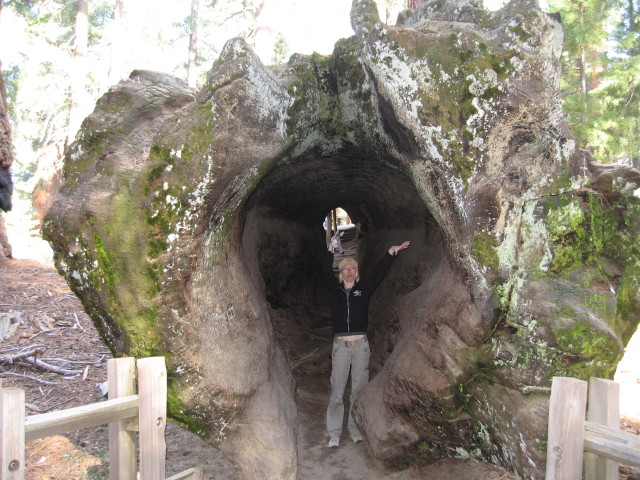 Nicht der höchste Mammutbaum, aber der mit dem größten Durchmesser. Die Krone ist tot, deshalb wächst er nur noch im Umfang. Ich bin fasziniert davon, was diese Bäume schon alles erlebt haben und  wieviele vom Feuer "gezeichnet" sind. Einige sind innen hohl und ausgebrannt und wachsen doch immer weiter. Am Parkplatz machen wir eine kurze Trinkpause. Die Wanderung ist zwar nicht sonderlich weit, aber auf einer Höhe von 7000ft. ist der Aufstieg schon anstrengend. Plötzlich ruft jemand hinter uns "Bears!!" und ich denke zunächst "..ja, nee is' klar" und dann sehen wir sie...
