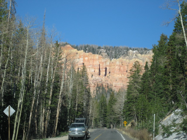 Auch hier liegt unterwegs noch ein bißchen Schnee und die Strasse zum Cedar Breaks NM ist noch gesperrt.