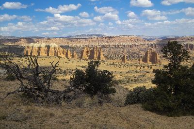 Später kreuzt die Straße die Fold des Capitol Reef und wenige Meilen später erreicht man die Burr Trail Switchbacks die ins Strike Valley hinabführen.