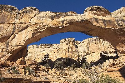 Diese Piste ist in keinem guten Zustand und wir werden ganz schön durchgeschüttelt. Irgendwie schaffen wir es aber bis oben. Unterwegs passieren wir u. a. einen schönen Doppelarch. Später im Visitor Center des Capitol Reef erkundigen wir uns nach dem Namen. Er ist zwar auf den Karten verzeichnet, ein Name ist der Rangerin aber nicht bekannt.