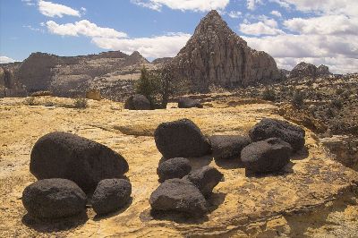 Unsere erste Fahrt führt uns zum Moqui Hill. Die dirtroad ist teilweise sehr sandig, wir erreichen die Stelle aber ohne größere Probleme. Bereits als wir aus dem Auto steigen liegen uns Moqui Marbles zu Füßen, die richtig schönen Exemplaren sollten wir allerdings erst eine ganze Weile später sehen, denn erstmal werden wir von Greg in Beschlag genommen.