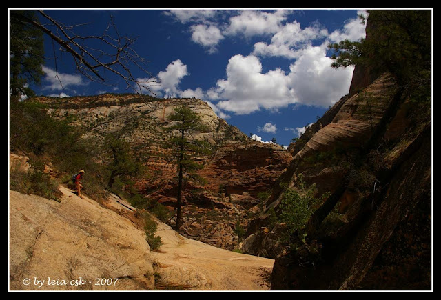 Da sich der Himmel inzwischen immer bedrohlicher zuzog, entschieden wir wieder zurück ins Tal zu laufen. Zumindest Line war darüber nicht ganz so unglücklich, sie hoffte immer noch auf Angels Landing...
