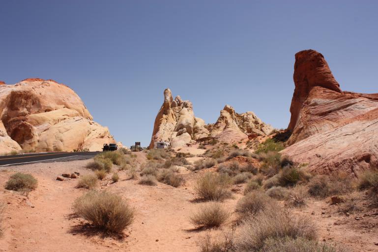 Wir sind ja lernfähig, also mit offenen Fenstern und kaum die Rückenlehne berührend ging es schnell weiter zum Valley of Fire Trailhead / Parkplatz.