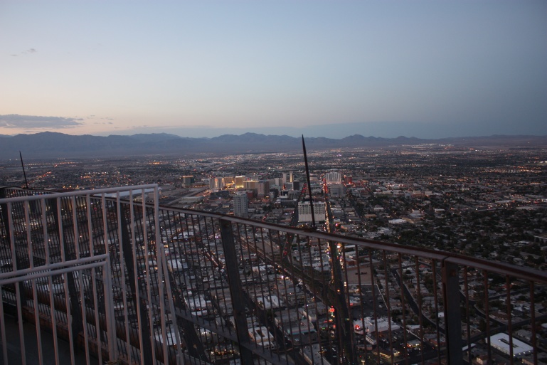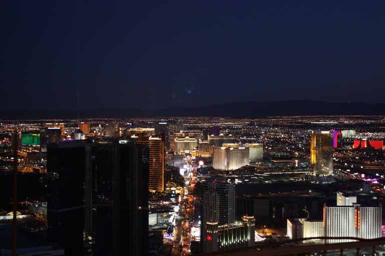 Toller Blick, ein wahnsinn welche einen Lichtschwall der Strip ausströmt, im Vordergrund ein riesiges Hochhaus welches wohl aufgrund der Finanzkrise nicht fertiggestellt wird. Und solch ein Frevel verbaut dann auch noch den Ausblick auf den Strip!  :|