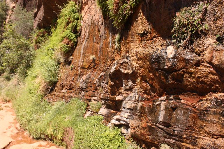 Neben der Aussicht am Canyon-Rand hat der Trail aber noch mehr zu bieten, so einige Wänder aus denen Wasser sickert und sich so kleine "hängende" Gärten gebildet haben.