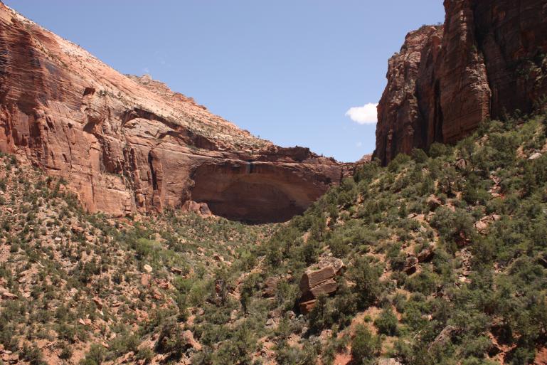 Die Wanderung schraubt sich vom Grund des Canyons auf Fluss-Höhe des Virgin River von gut 1.300 Metern hoch auf fast 2.000 Meter über dem Meeresspiegel.