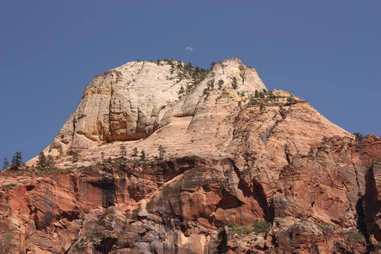 Und nach einigen richtig steilen Kehren zeigt sich endlich der Zion Canyon, bereits von hier ein beindruckend schöner Blick